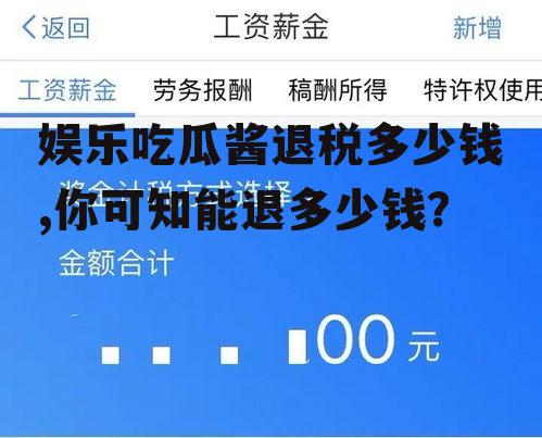 最近娱乐圈可是热闹非凡,各种八卦新闻层出不穷,让人看得是津津有味。这不,最近有个话题引起了大家的广泛关注,那就是“娱乐吃瓜酱退税多少钱”。你是不是也好奇这个话题呢?那就跟着我一起来一探究竟吧!