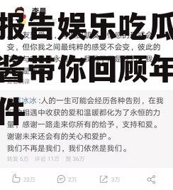 亲爱的读者们,你们有没有发现,最近娱乐圈的热度简直像开了挂一样,一波又一波的瓜让人应接不暇!这不,一年一度的娱乐圈年度报告又新鲜出炉了,咱们一起来吃瓜酱,看看今年娱乐圈都有哪些新鲜事儿吧!