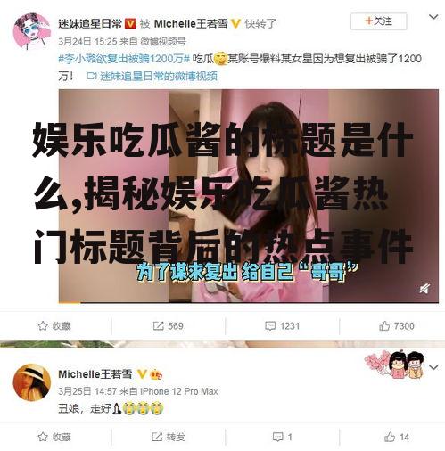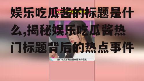 亲爱的读者们,你是不是也和我一样,每天在互联网上闲逛,时不时地被那些娱乐八卦的新闻吸引住眼球呢?没错,我就是那个热衷于追剧、看综艺、翻明星动态的“吃瓜酱”。今天,我要和你分享一个超级有趣的发现——那些让人忍不住点开的娱乐吃瓜酱的标题,究竟藏着怎样的秘密呢?